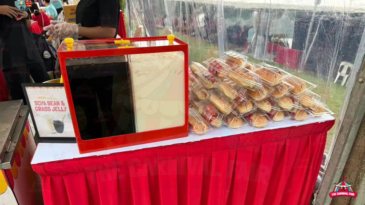 Talk about the perfect combo! We served up refreshing traditional soya bean drinks paired with chewy grass jelly, alongside convenient prepacked hot dogs. It's the ideal mix of local flavours meeting carnival classics,giving guests that satisfying savoury-sweet balance we all crave at outdoor events.